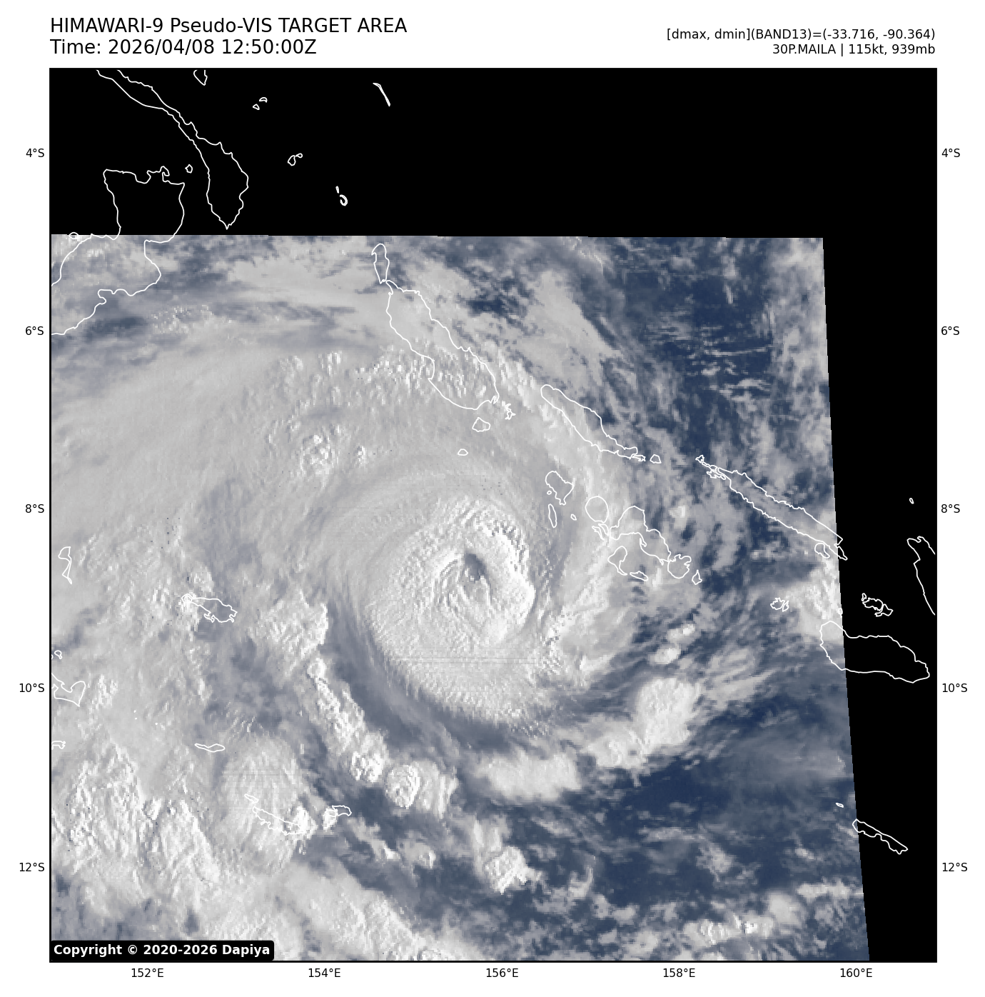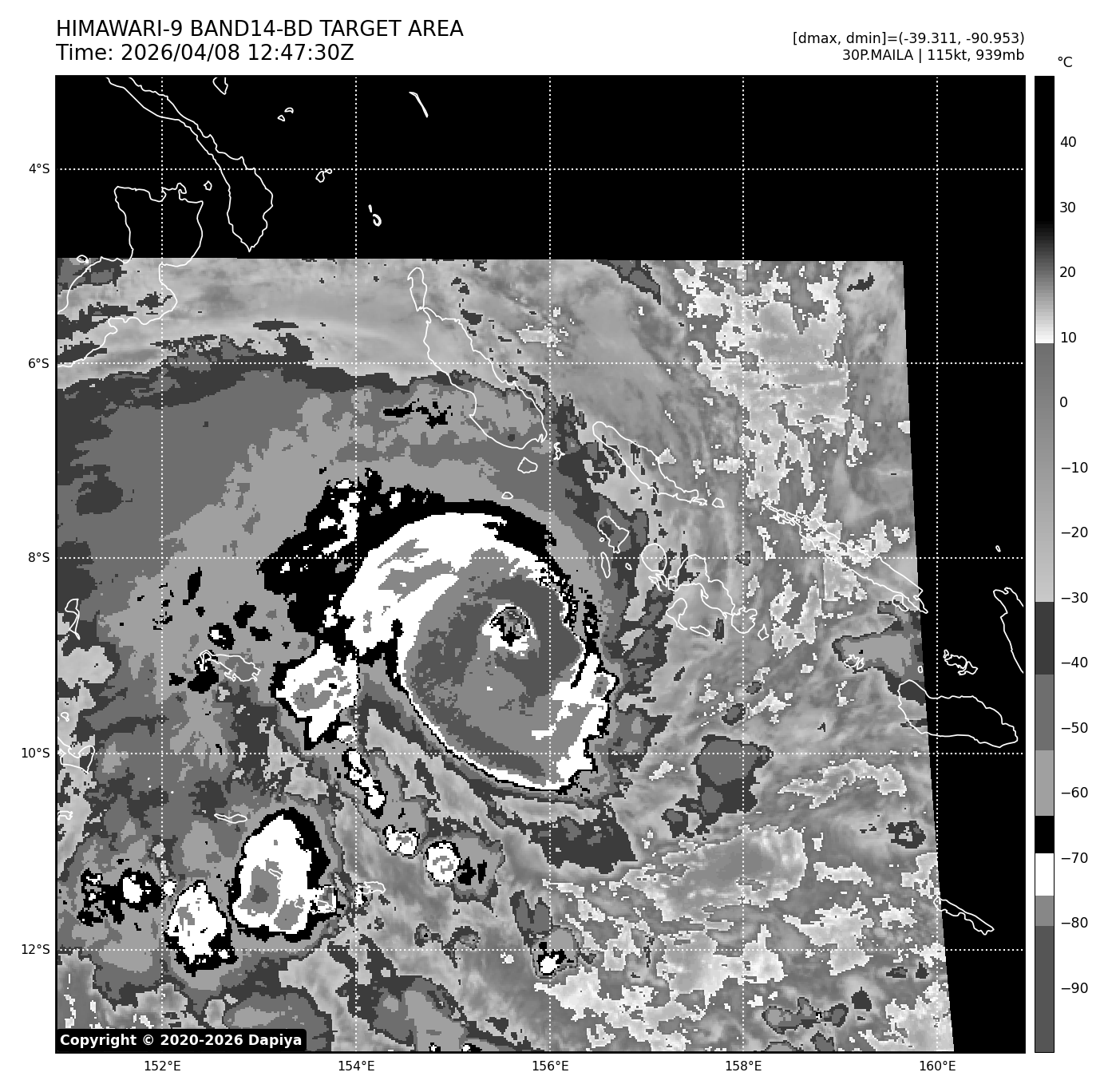 [值得关注] 所罗门海五级强热带气旋“迈拉”(37U/30P.Maila) - 巴新十八年来首个命名热带气旋,在所罗门海回旋 - BoM:115KT JTWC:125KT |